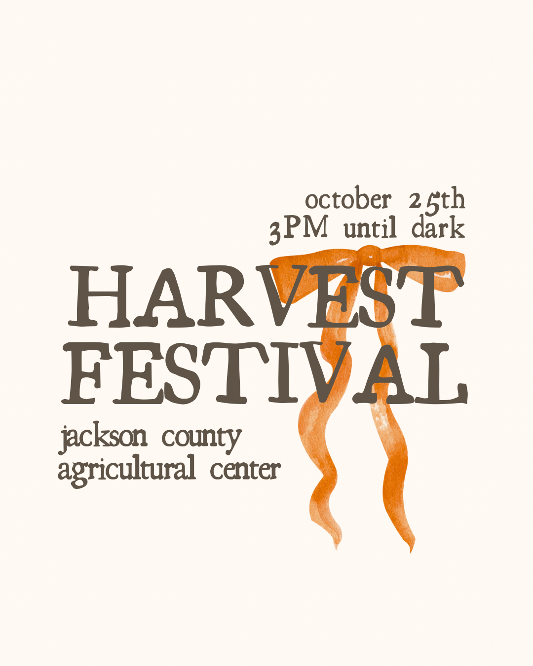 oct 25th: harvest festival in jefferson ga; 3pm - until dark. location: jackson county ag center