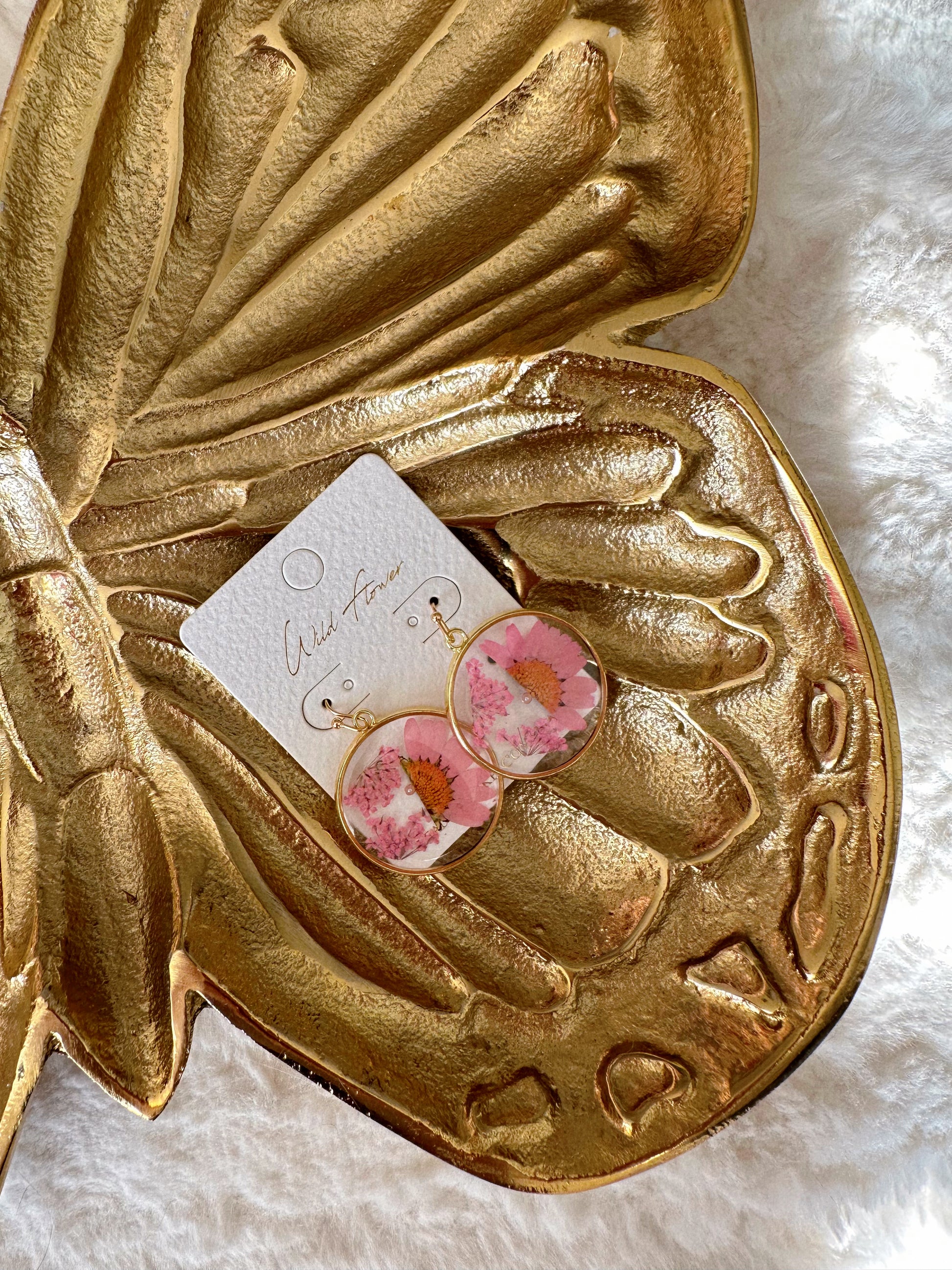 Golden Gaze Pink Floral Resin Earrings