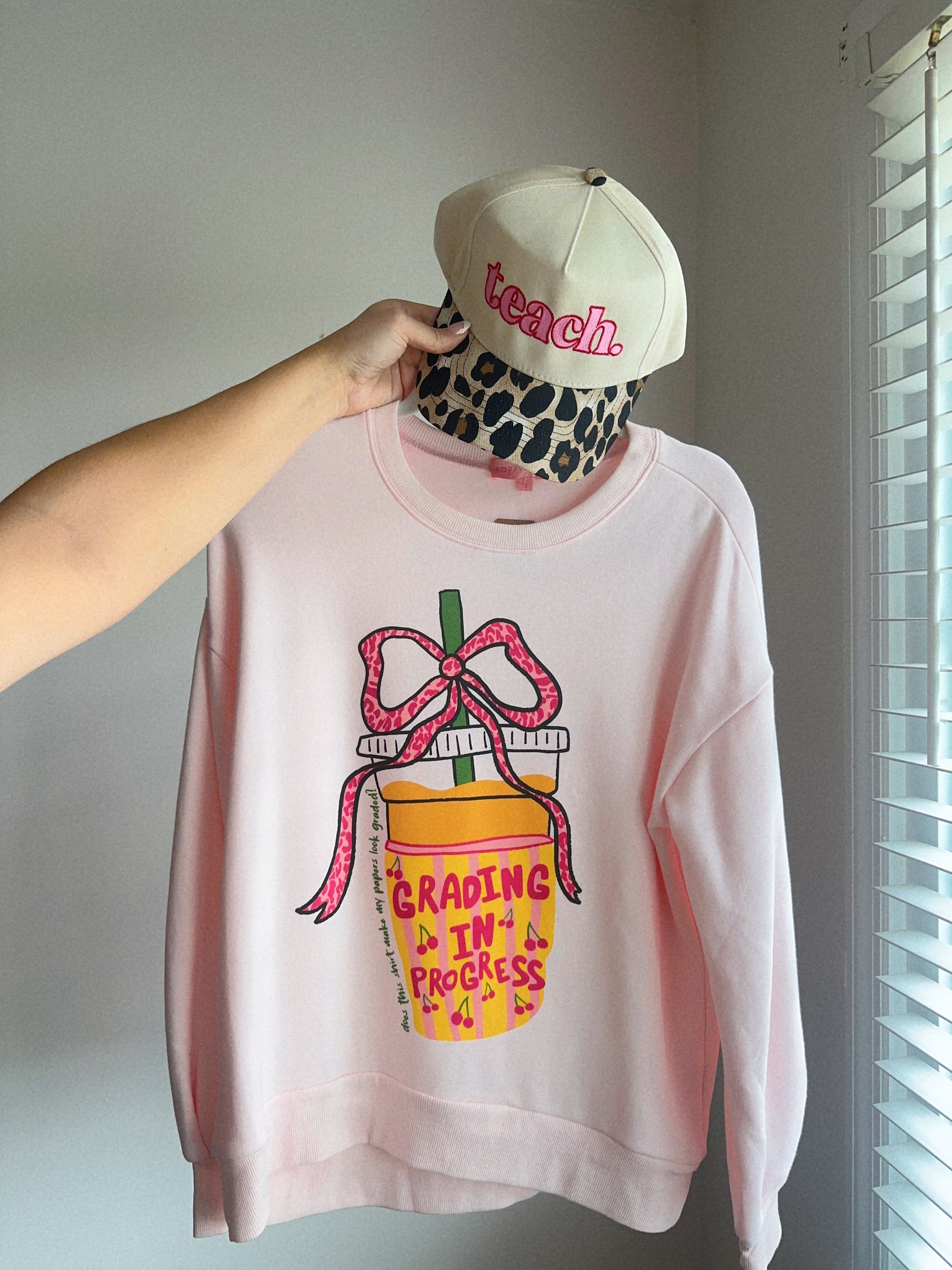 Iced Coffee And Grading In Progress Soft Pink Sweatshirt LAST CHANCE