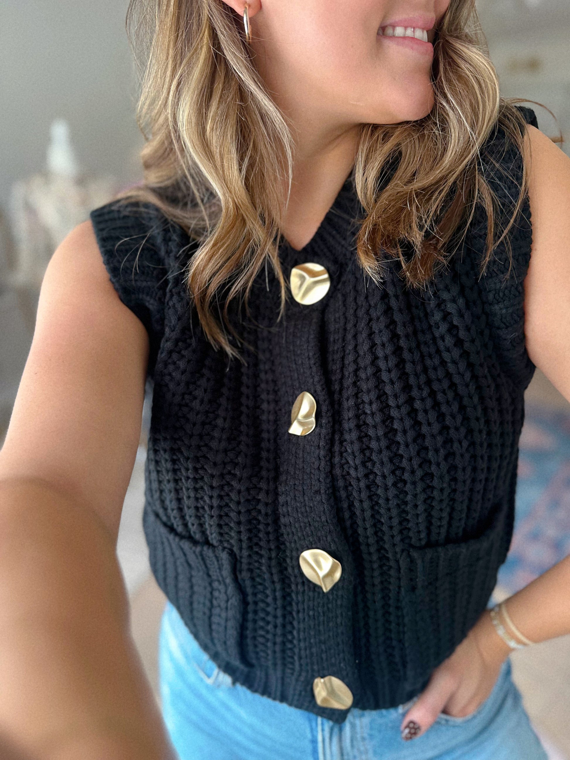 Plan To Make A Statement Chunky Black Knit Sweater Vest