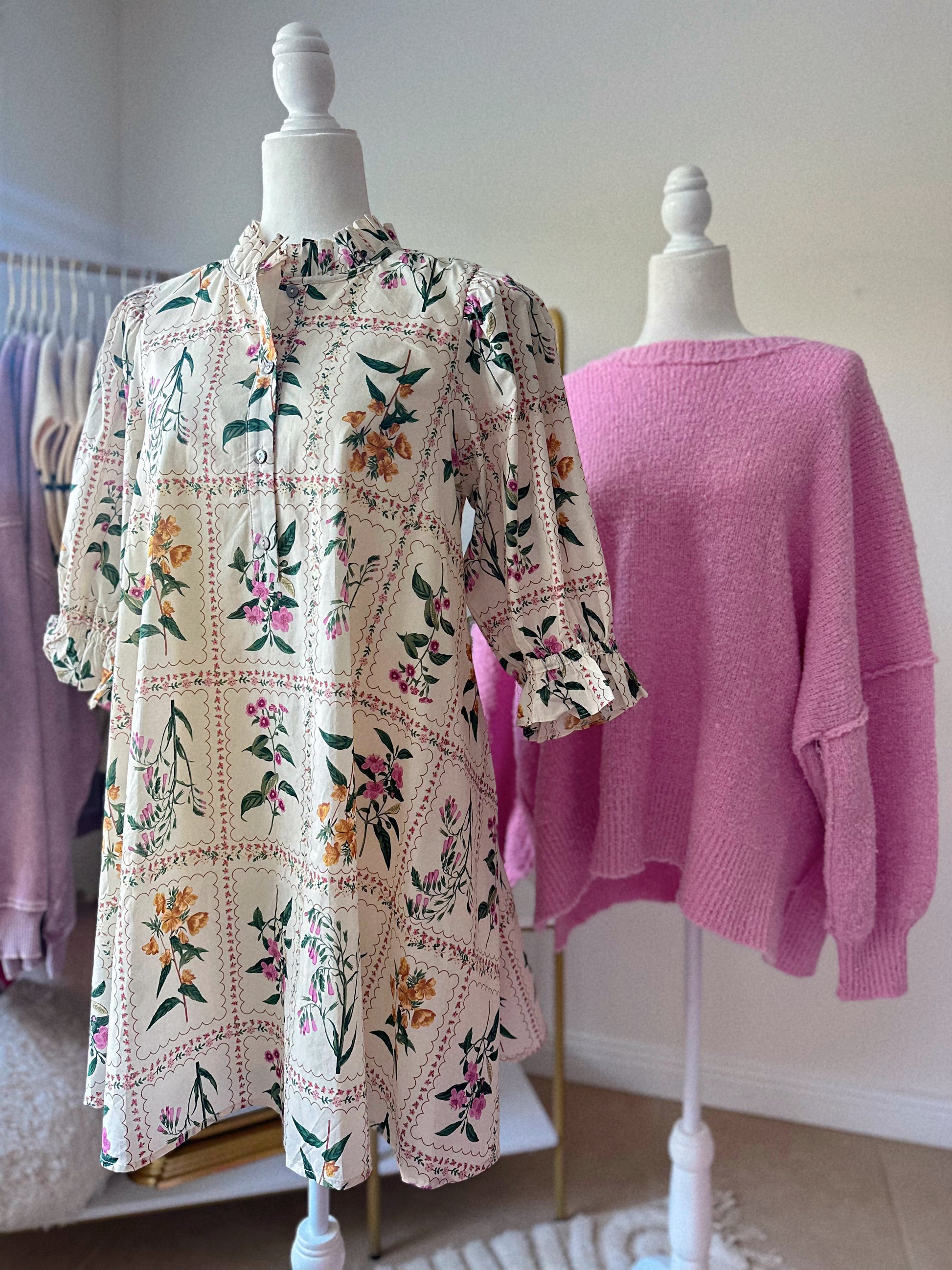 Floral prints + Fall colors are here to stay with our newest mini dress, featuring a lightweight & lined material, one side pocket, an adjustable back tie waist for the most flattering look, and a slight ruffle collar and sleeve. Dress runs true to size & is waiting to be in your closet!